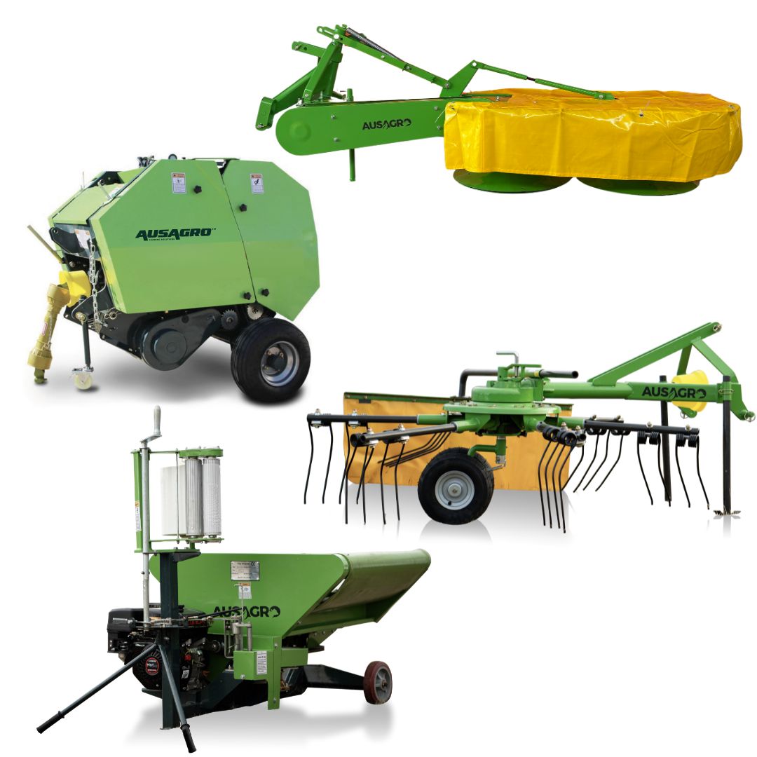 Combo Completo Mini Rotoenfardadora, Segadora, Embaladora y Rastrillo